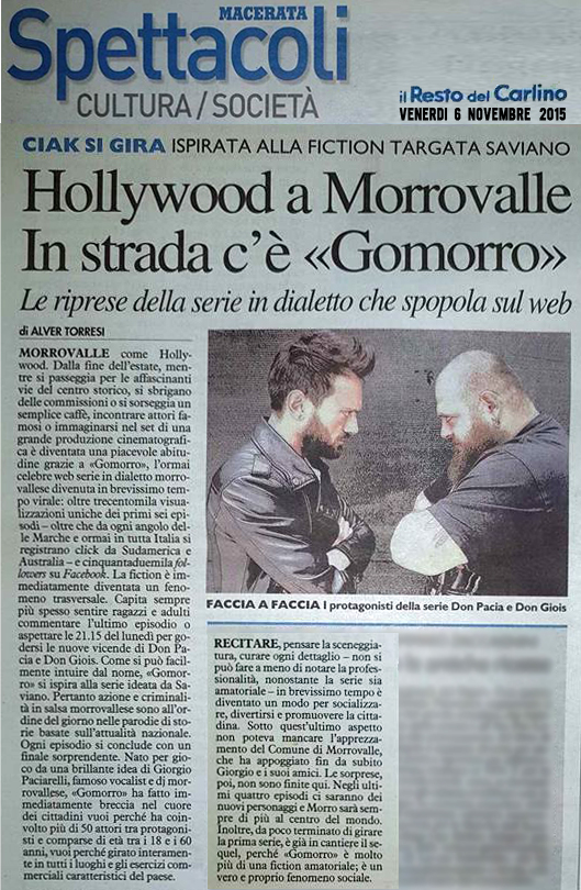 IL RESTO DEL CARLINO, rinomato quotidiano nazionale, nella prima pagina Spettacoli di oggi, parla del fenomeno Gomorro La Serie. Potete leggere l’articolo completo qui sotto: